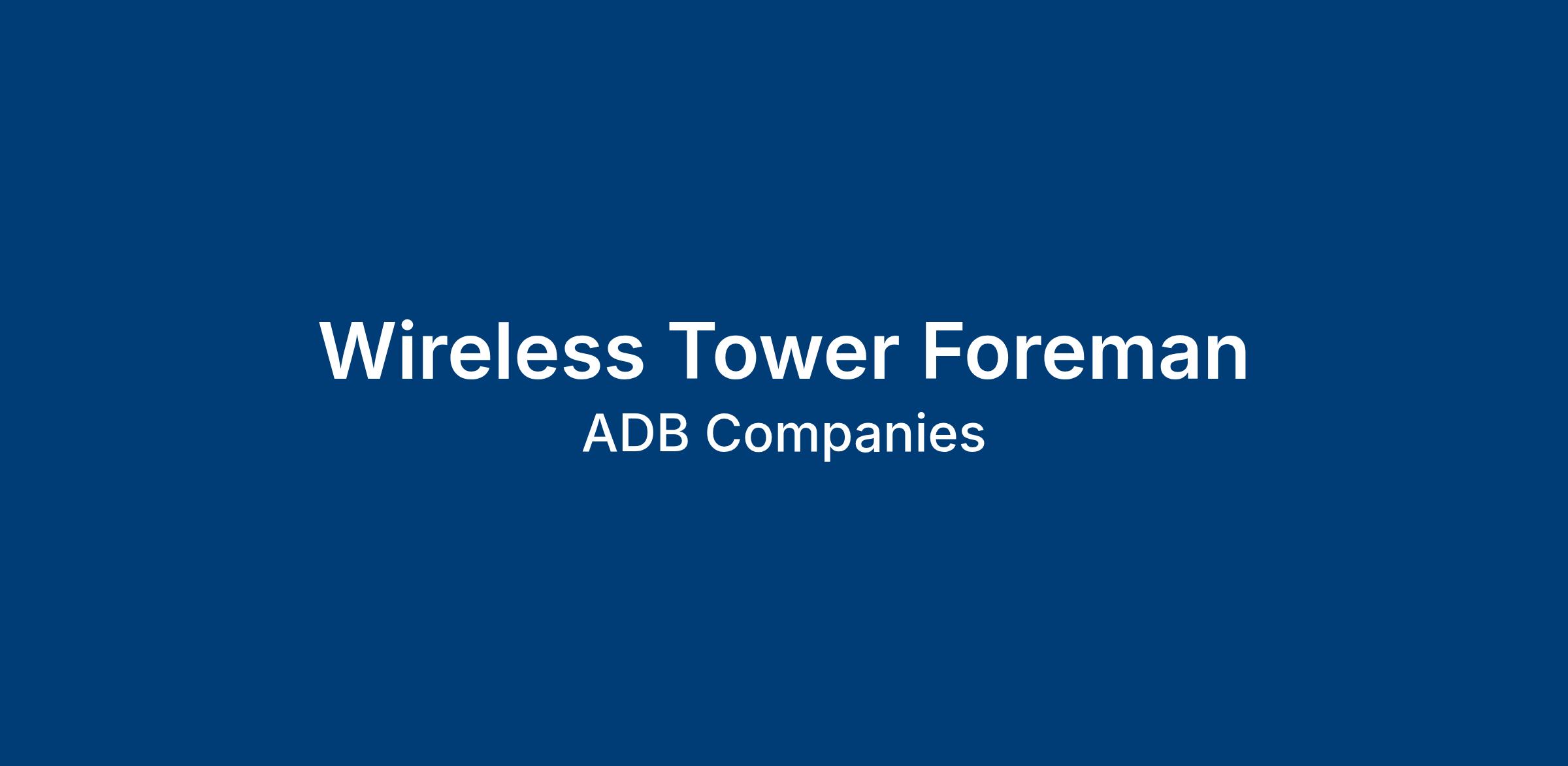 ADB Wireless is seeking a Tower Foreman to lead the day-to-day performance, safety, production, and quality expectations on a variety of wireless tower projects. This position will perform work on communication towers for the purpose of installing, replacing, and repairing wireless communications equipment. The Foreman will be a team leader and mentor to various Tower Technicians. The ideal candidate will have extensive wireless technical experience, a strong belief in the safety and well-being of team members, as well as a strong work ethic and ALL IN attitude to achieve results.